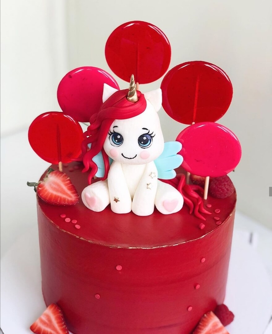 Насыщенный красный цвет, милый единорог и вкусная начинка сделают ваш праздник ярче!