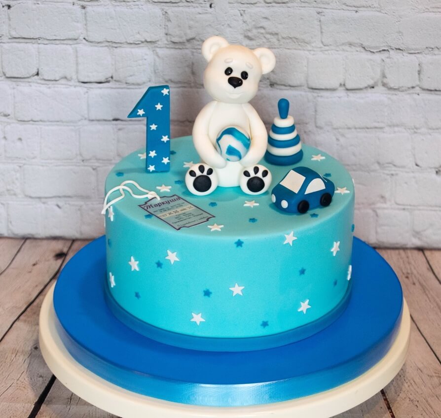 Нежный мальчишеский тортик на первый день рождения